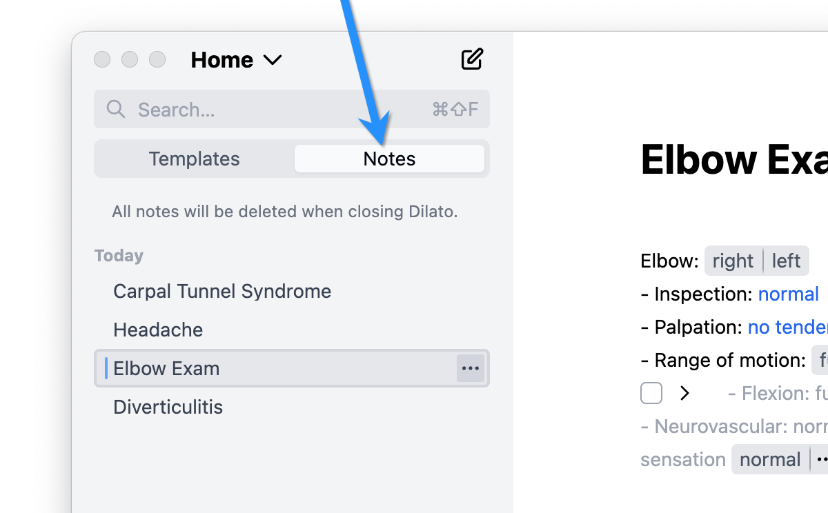 We believe this change will make the app more intuitive by reducing the steps to begin a note (what you do most in Dilato.) However, we understand that for our long-time users, this is a significant shift. You’ve grown accustomed to the current workflow, and change can be challenging.